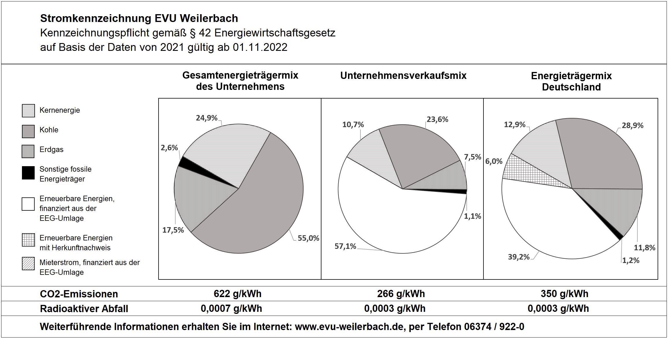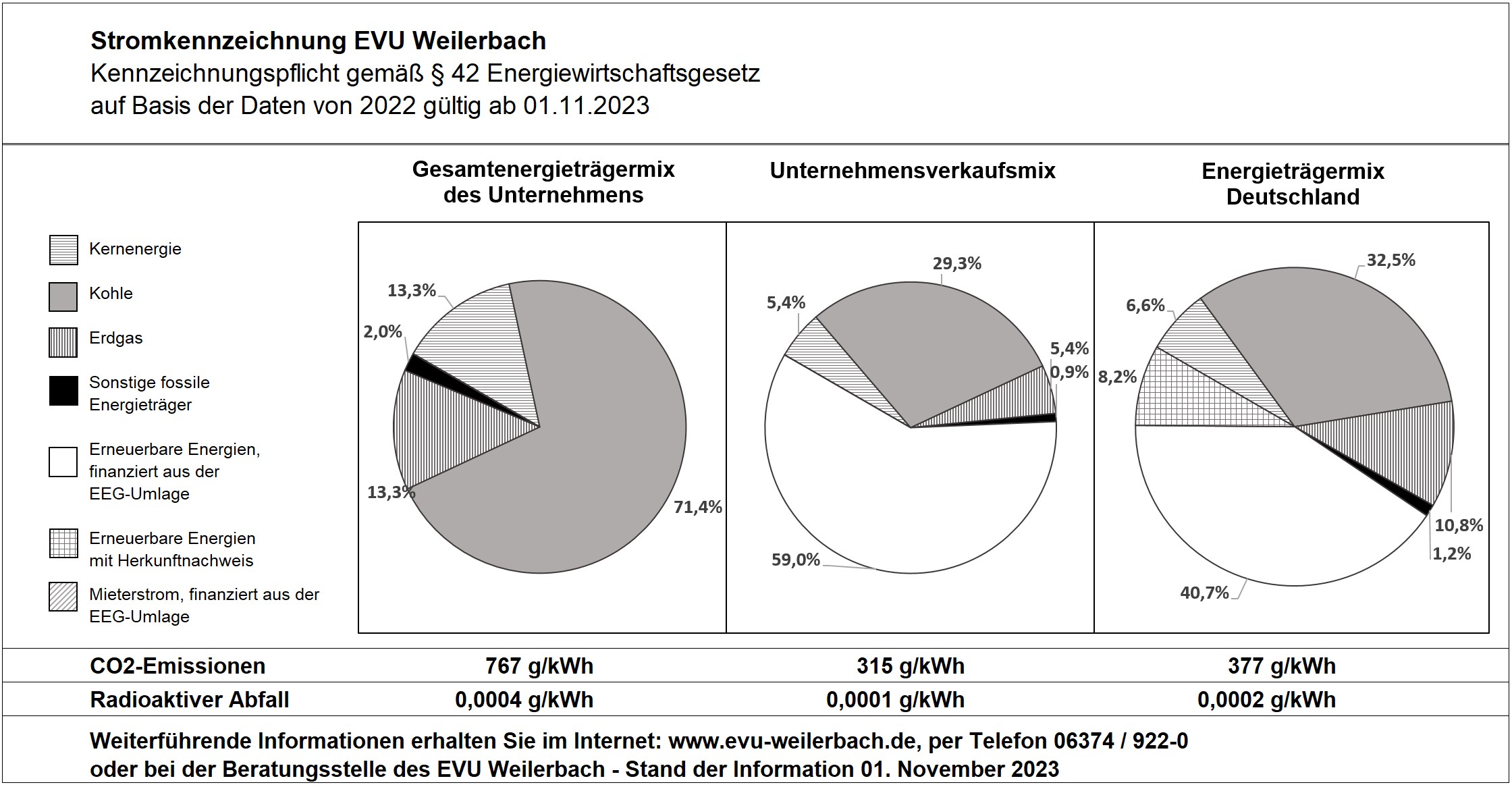 Gesamtenergieträgermix auf Basis des Jahres 2024 für das Jahr 2025 des EVU Weilerbach